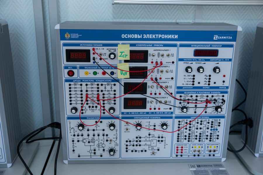 - Лаборатория электронных приборов оснащена универсальными стендами для исследования полупроводниковых приборов и контрольно-измерительной аппаратурой.